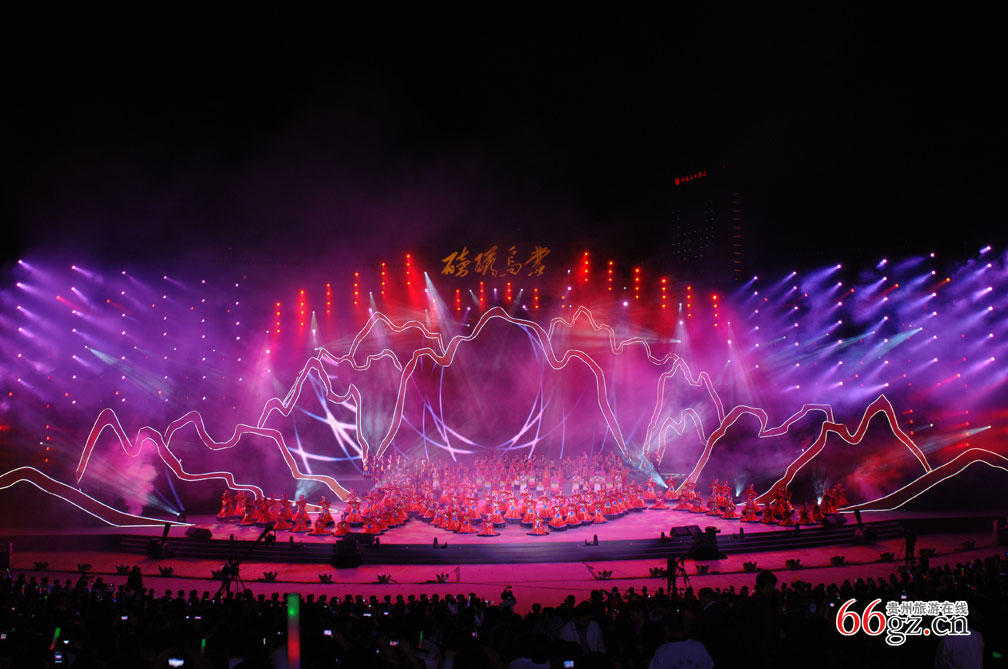 第七届贵州旅游产业发展大会倾力打造的“磅礴乌蒙”文艺汇演在中国杜鹃花都--黔西,美丽的水西湖畔杜鹃花广场隆重上演。