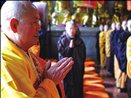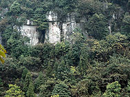 沿路而上,一个天然的溶洞供奉着三尊佛像。白塔,佛像藏匿于山林之间。山林的地势是一个一个天然形成的洼地,我们鸟瞰而下,白塔连同苍翠的绿荫尽收眼底;而山上,矗立于山顶的地藏塔、钟塔、佛像又矗立在那。“远离尘嚣,神宁心静”,我想,用这样的词形容现在的情景是再适合不过了。
