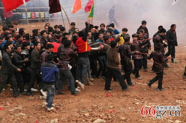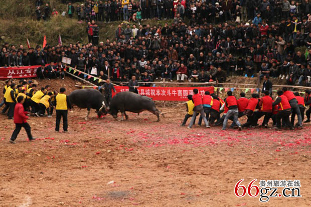 随着时光接近中午,赛场四周的山坡,渐渐站满了观看斗牛的人们,大家虽然拥挤,虽然分别呼朋唤友、攀亲拉戚,却按着先来后到的循例,各自选择占据着观战的有利位置,人人相安无事,并不发生任何冲突和争执。想在城里看演出或比赛,常常看到发生争抢甚至殴斗,相较之下侗家民风之淳朴,才是真体现出一种和谐。