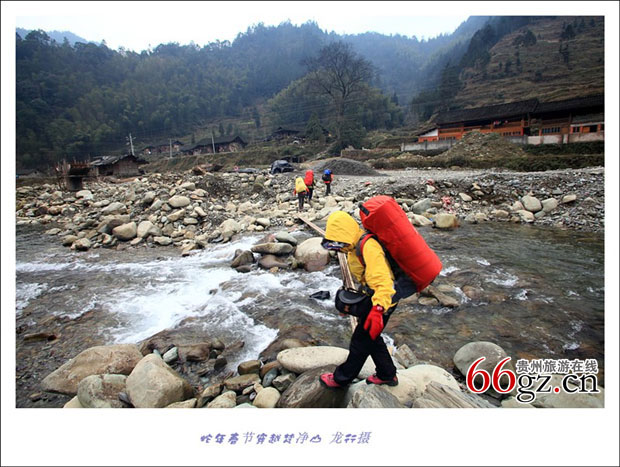 沿途一位来自成都的mm坐在我身边,也是独自一人出来旅游,空空他们因昨晚没有休息好,一路都在闭眼补觉,我就与漂亮mm一路聊天,不知不觉两个半小时的路程到达了江口汽车站。于是我们就近找一家小店吃午饭,顺便商议一下采购上山的物质,小店炒菜手艺很不错,我们一行五个人,五菜一汤,非常舒心,饭后分头行动,空空负责买汽油、找车,伊依、落叶和我负责采购油盐米肉、锅碗瓢盆,采购完后,空空也落实好车了,大家在欢快的气氛中向我们的目的地出发。特别值得提出的是,大漠两口子,年前就考虑到我们一行可能在玉屏买不到气罐,跑遍全城也没有寻到气罐的情况下,情急之下,就地加了当地一个户外群,联系到一个热心的驴友,从他那里买了两罐汽,就是有了这两罐汽,让我们沿途有了保障。