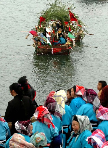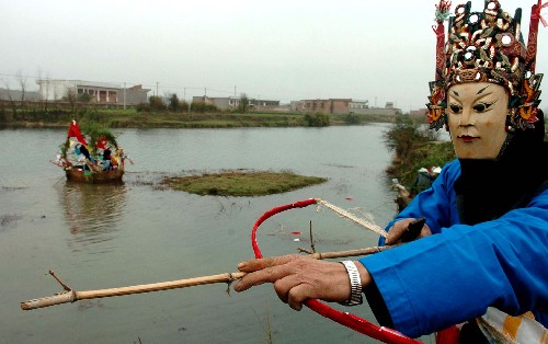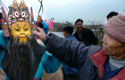 贵州省安顺市刘官乡周官村的五虎平西傩戏班子为乡亲们送上了一台精彩的水上新傩戏――《草船借箭》。这个有着400余年历史的傩戏班子在当地颇有名气,他们一改以往日在平地上演出的传统,将舞台“搬到”水上,以新的表演形式迎接新春的到来。