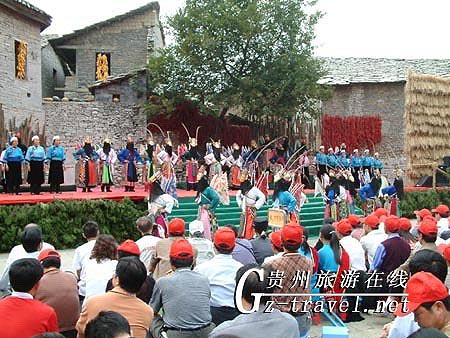 8月26日,群山怀抱,彩旗飘扬,激情瀑乡,魅力屯堡,整个天龙屯堡古镇到处洋溢着节日的气氛。由中共安顺市委、安顺市人民政府、贵州省旅游局联合举办的2005中国·贵州黄果树瀑布节——屯堡文化活动周天龙屯堡大型实景组诗《大地诗章》系列活动在天龙屯堡隆重举行。