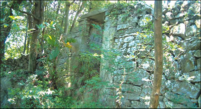 记者近日在镇宁革利一带的苗区看见,这座古城位于一个名叫大干丈的自然村里,修建在一座高高的山上,面积约10平方公里。山头西面是万丈绝壁,东、南、北三面则以三道城墙作为三道防线。第一道城墙围着山修建,呈椭圆形,第二道城墙比每一道城墙稍长,第一道城墙的两边终端与第二道城墙相接,第二道城墙的两边终端与山西面的绝壁相接,第三道城墙位于山的最高点,同样两边终端都是与绝壁相接。第三道围墙围住的面积可修建数十栋房屋,要想进入第三道城墙的防区,必须要先经过第一道、第二道城墙,由此不难看出,第三道防区应该是这座古城的中心,当时居住在此的人的级别可想而知。