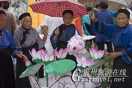 九溪村位于安顺市东南隅,距市区20余公里,是安顺市最大的屯堡自然村寨。这天十里八乡的屯堡人聚集在九溪参加河灯节。
