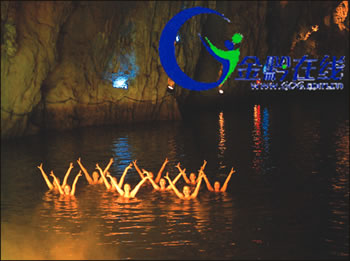 9月16日,2006年黄果树瀑布节拉开帷幕,同时,龙宫投入200万举办的“俄罗斯花样游泳世界冠军表演”活动也在龙宫上演,昨日上午,11位俄罗斯“美人鱼”在龙宫湛蓝的“天池”中试水畅游,昨晚,她们又携伴在世界最美丽的天然水溶洞中,尽情起舞,与龙王宫殿的神秘相映衬,为水溶洞增添了一道绚丽色彩,这是世界顶级花样游泳首次在最美丽的天然水溶洞激情绽放。