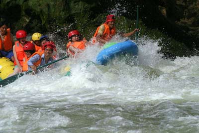 黄果树漂流位于黄果树大瀑布下游6公里处。漂流全程约6公里,沿途属典型的喀斯特地貌,全程水位落差30多米,激流险滩达12处之多,单个险滩最大落差达4米多,急流直下,浪遏飞舟让你惊心动魄。漂流船在河流中起伏跌宕,高歌猛进,尽显勇士风范。