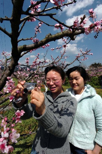 3ÔÂ1ÈÕ£¬ÔÚ¹óÑôÊÐÓÀÀÖÏçË®ÌÁ´å£¬Á½Î»³ÇÀïµÄ¹ÃÄïÔÚÅ©ÃñµÄÌÒÔ°ÀïÉÍÌÒ»¨¡£