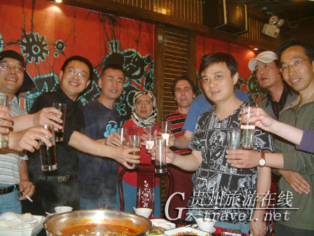 4月30日,由贵州省委宣传部,中国国际广播电台共同主办的沿着歌声走贵州大型采访活动最后一站在国家级风景名胜区黄果树瀑布结束为期八天的原生态之旅。来自八个国家的专家团领略到了把美丽心灵和民族历史绣画在衣裙上的苗族盛装的雍容华贵,领略到苗族歌舞的欢快奔放,领略到“最后一个枪手部落”里岜沙汉子的豪迈传奇,领略到“天籁之音”侗族大歌的曼妙悠长,领略到布依族八音坐唱的悠远古老,领略到贵州各族人民的纯朴与好客,领略到多彩贵州的神奇与多情;八天的时间是短暂而非常有意义的,通过走进贵州,倾听贵州,发现贵州,感动贵州,专家团们在分离的最后时刻欢聚在一起留念合影,举杯共饮。