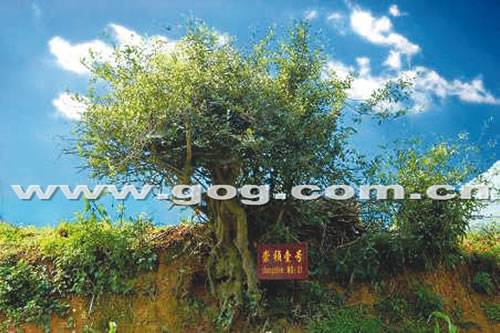 其中树龄最大的一株是生长在张家村贡茶山上的被命名为“贡茶之祖”的茶树,该茶树占地50余平方米,郁郁葱葱,像一把天然的大伞。张家村104岁的老人张德英说,她小时候这株茶树就这么大。有关专家鉴定,这株茶树已有500多年的历史,比崇祯皇帝(公元1628—1644年)还年长200多岁。
