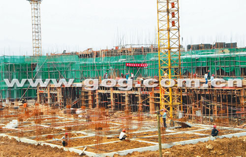 7月7日,位于黄果树景区边的黄果树新城建设工地一片繁忙。该工程投资1.5亿元,建筑面积达13.8万平方米。主体工程预计今年10月完成,竣工后将安置“半边街”搬迁户500多户,同时也将成为一个新的休闲购物景点。“半边街”的建筑全部拆除后,瀑布景区面积将扩大,观赏瀑布风景的视角将更为理想。