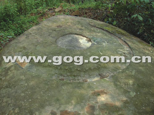 最为明显的是巨石表面用铁器凿成的圆形图案,该图案是由一个直径约