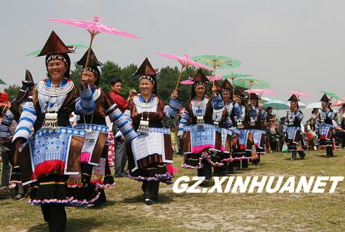 当日是农历7月12日,贵州省安顺市平坝县近万名苗族同胞欢聚在一起,庆祝一年一度的“米花节”。苗族“米花节”是苗族群众为了预祝丰年,在每年农历7月中旬水稻扬花期间举行的一项传统活动,内容包括跳花、吹芦笙、斗鸟等。