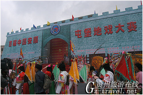 地戏,是流行于安顺一带屯堡村寨的一种民间戏剧,是明朝初年朱元璋“调北征南”“屯田戎边”时,由来自安徽省的屯军所带来,距今已有六百余年的历史,以表现古朴粗犷被专家学者称誉为“中国戏剧的活化石”,被列入国家级非物质文化遗产保护名录。