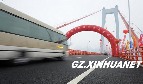 2009年12月23日,一辆汽车驶过刚通车的坝陵河大桥。