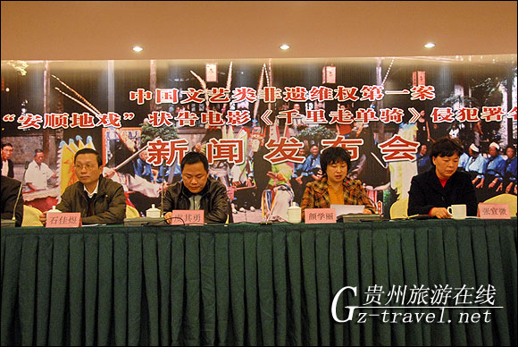 本站讯 1月25日,贵州省安顺市委宣传部、市文化局联合在贵阳市召开状告电影《千里走单骑》侵犯署名权新闻发布会。