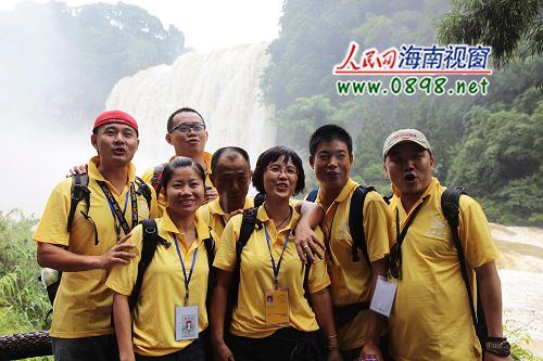 今天上午,来自海南的百名导游,身着统一的黄色短袖,一起走进黄果树旅游景区。在绵绵夏雨中,他们穿着雨衣或撑着伞并肩前行,边走边笑,还时不时地停下来拍照留念。每到一处,都十分抢眼,好比一道青春的风景线。