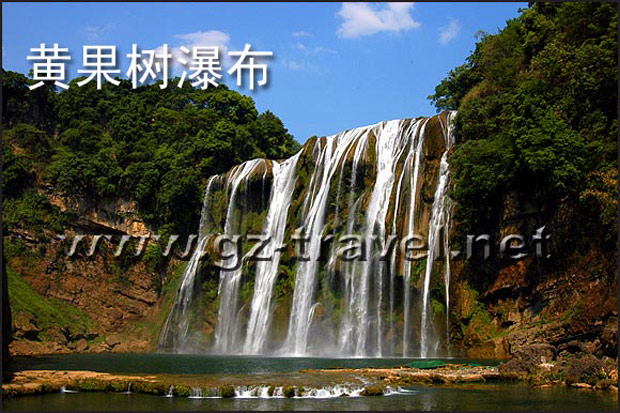 黄果树瀑布,位于中国贵州省安顺市镇宁布依族苗族自治县,是珠江水系打邦河的支流白水河九级瀑布群中规模最大的一级瀑布,黄果树瀑布不只一个瀑布的存在,以它为核心,在它的上游和下游20千米的河段上,共形成了雄、奇、险、秀风格各异的瀑布18个。1999年被大世界吉尼斯总部评为世界上最大的瀑布群,列入世界吉尼斯记录。黄果树大瀑布是黄果树瀑布群中最为壮观的瀑布,是世界上唯一可以从上、下、前、后、左、右六个方位观赏的瀑布,也是世界上有水帘洞自然贯通且能从洞内外听、观、摸的瀑布。