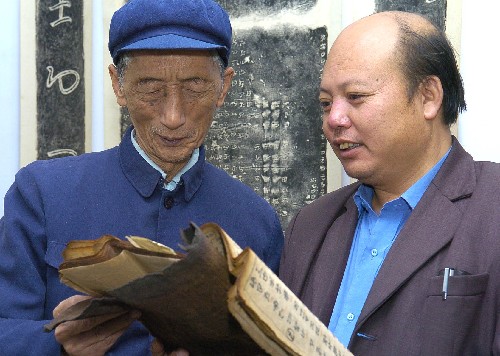 ÒÍÎÄ·Òë×é×鳤Íõ¼Ì³¬£¨ÓÒ£©ºÍһλÒÍ×åÀÏ·Òë¼ÒÔÚ²éÔÄÒ»·ÝÒÍ×å¹Å¼®