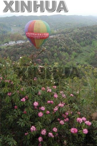 4月12日,游客搭乘热气球观赏杜鹃花,感受飞行的刺激.