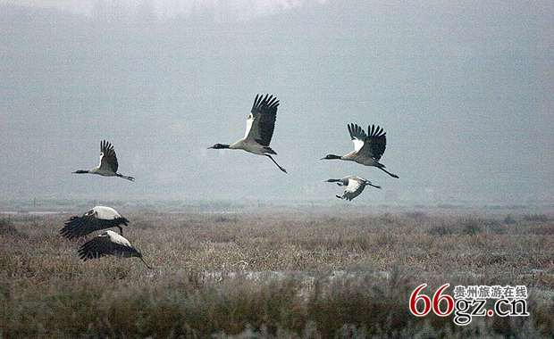 4月17日,在威宁县草海镇草海湖畔,美景引来大量游客和摄影爱好者。