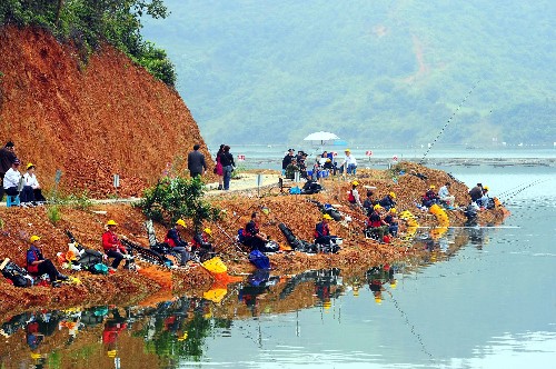 当日,首届全国山地运动会野钓项目暨第二届中国万峰湖野钓大赛在贵州省兴义万峰湖举行,来自国内208名钓鱼爱好者参加这次比赛。
