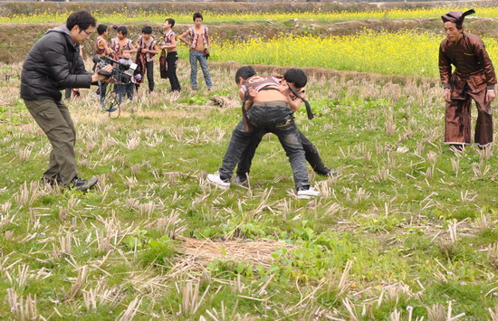 ÑëÊÓÉÙ¶ùƵµÀ¡°ÐÂÎÅ´ü´ü¿ã¡±¼ÇÕߣ¨×ó£©ÔÚÅÄÉãµ±µØÁ÷´«Ç§ÄêµÄ¶±×åÉÙÄêÌïҰˤõÓ