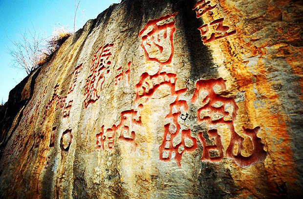 红崖天书是深藏贵州腹地的一处神秘景观,数百年来,经历代学者先贤孜孜不倦不断探索,山岩上那些仿佛文字的古怪符号,却蕴藏着无穷怪异,穿越时空的非凡意义,引起了国内外史学界的格外重视。岩壁上那些赫红色的神秘符号,非雕非凿,了无刻痕,经数百年风雨剥蚀,却能依然如故,色泽似新。这种呈现眼前不难察觉的神秘,更能激发人类去探索红崖天书那扑朔迷离的内涵。