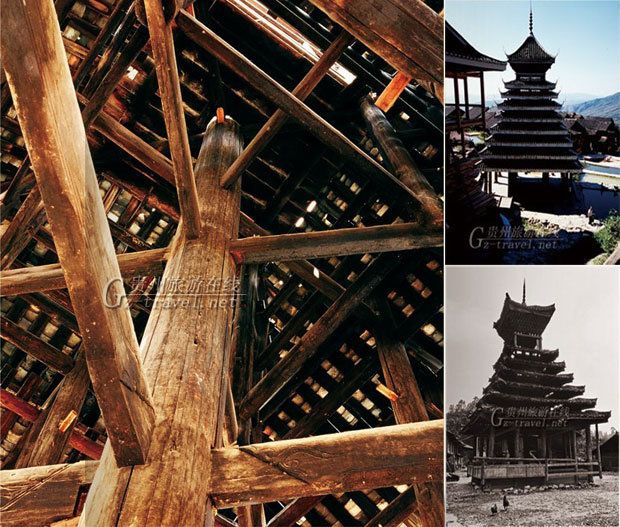 独柱鼓楼位于贵州省黎平县岩洞镇述洞村,距黎平县城35公里。该楼被列为黎平县重点文物保护单位。独柱鼓楼为纯木结构建筑,七层檐四角攒尖顶,密檐式木结构建筑,占地面积55.3平方米,高15.6米,只有一根中心柱直贯顶端,承受整座鼓楼的主要压力。述洞独柱鼓楼从始建迄今,历经近400年的风雨,是整个侗族地区现存的唯一的最早的鼓楼雏形,被誉为鼓楼之宗,其建筑工艺精湛,力学结构独特,具有极高的科研价值、文化价值和旅游观赏价值。这座鼓楼的建造,对后来鼓楼建筑的发展产生了巨大的影响。侗族鼓楼在独柱鼓楼的基础上进一步弘展,在追求平衡、强调稳定、力图美观等方面进行了大量的探索,于是出现了如今各式各样的鼓楼,最常见的是十六柱鼓楼。独柱鼓楼是中国古建筑的一个品种,不仅是侗族建筑的瑰宝,而且也是世界建筑艺术的瑰宝。述洞独柱鼓楼已于2001年1月15日列入大世界吉尼斯之最。并被列为国家非物质文化遗产。