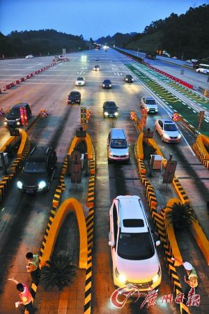 广佛高速横沙收费站,车流正常,没有出现返程车辆拥堵现象。