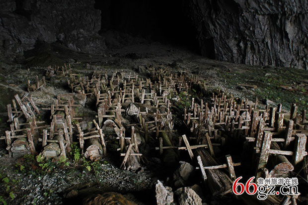 贵州境内多属典型的喀斯特地貌,大小溶洞随处可见。苗族洞葬在贵州很多地方都有出现,较为密集的地区属黔南州,境内神秘洞葬遗址达20多处。而距离贵阳市最近最出名的则当数高坡乡甲定村的甲定洞葬。相传,高坡苗人从开始实行洞葬至今,已有600多年的历史。高坡的苗人把洞葬叫“把个杜”。“把个”是洞的意思,“杜”则是苗语的鬼,合起来的意思就是“洞里面的鬼”。贵阳周边保存较完整的洞葬除了甲定洞葬还有杉坪洞葬。洞葬的葬具大多用木板拼合,有的在棺木外加井字形棺架固定搁置棺木。是人类早期穴居生活的反映。