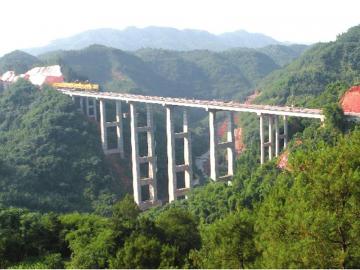 納黔高速公路大多在崇山峻嶺中穿越,橋隧比達40%,特別是敘永以南部分,橋隧比更是高達57%,超過一半的道路,都在橋梁隧道當中穿行。其中,冷水河特大橋主墩高達135.5米,在省內同類橋型中墩高排名第二﹔敘嶺關特長隧道單洞超過4公裡,是目前省內穿越岩溶區最長的高速公路隧道。