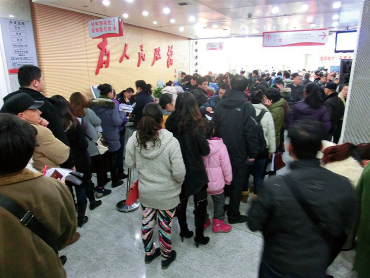 昨日上午10时30分许,记者来到贵阳市公安局出入境管理分局接待大厅,一进入大厅,便只见人头攒动,和室外的冷天冻地相比,大厅内完全是热火朝天,一片繁忙的景象。