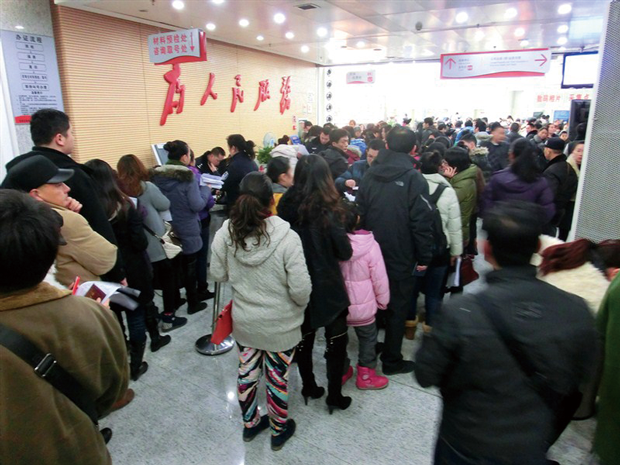 在排队取号处,一位老爷爷拿着一张2324号的票,再看看屏幕上显示正在办理的号是2013号,无奈又欣慰地说:“还要等300多个才到自己,不过也总算排到号了,接下来就慢慢等了。”