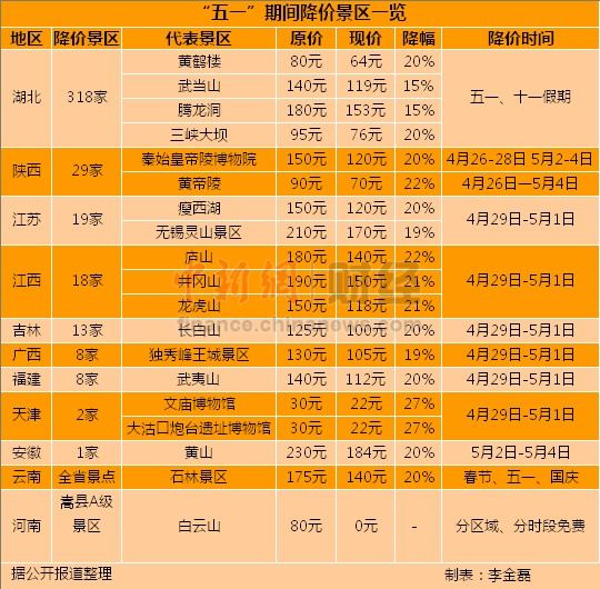 “五一”临近,国内部分景区涨声一片,凤凰古城148元的“一票制”更是引发巨大争议,然而,中新网财经频道发现,与“涨价潮”形成鲜明对比的是,湖北、江西、河南、天津等11个省市宣布将在“五一”假期或“五一”前后降低门票价格,据不完全统计,共涉及大小景区400多家。