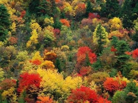 更令人陶醉的是俄初山的秋天,红的妖艳、黄的明丽,绿的和谐,五彩缤纷,满山遍野,浓装淡抹总相宜。