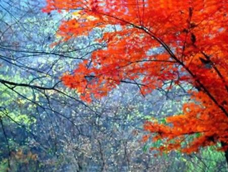 要看火红树叶,最好找生长位置是北风吹得到的树,例如悬崖边、空旷地等,位于山谷、低洼地区的枫、槭通常还来不及红,便已落叶。