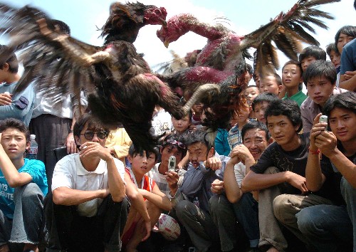 近年来,贵州省大方县百纳彝族乡的彝族同胞们富裕起来后,失传已久的传统民间娱乐活动――斗鸡,又开始在当地民间流行起来。每逢周末,百纳乡都要举行斗鸡比赛,吸引群众观看。
