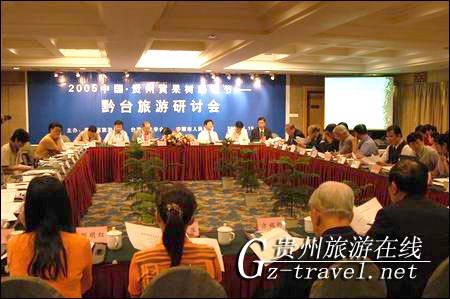 8月19日,由贵州省旅游局、台湾观光学会、安顺市旅游局三家单位联合主办的2005中国·贵州黄果树瀑布节——黔台旅游研讨会在筑隆重举行。贵州省政协副主席唐世礼、原中国旅游协会副会长李玉莺、贵州省旅游局副局长傅迎春、安顺市市长慕德贵、台湾观光学会会长唐学斌、台湾观光学会顾问黄国藏、安顺市旅游局局长肖丽等有关领导、专家学者90余人出席了会议,会议由贵州省旅游局机关党委书记陈国钧主持。大家共聚一堂,共同研讨贵州、台湾两地观光旅游业的发展新思路。