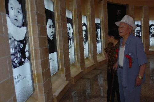 8月19日,两位老人正在参观纪念馆新馆的缅怀厅。