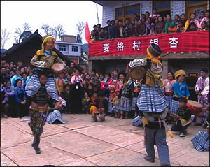 3月8日,清镇市麦格乡举行“银杏歌节”,万余名盛装的苗族、布依族同胞用甜美的歌声、欢快的舞蹈欢庆传统节日——桃花场,同时启动该乡多彩贵州旅游形象大使选拔活动。 每到农历二月桃花场的时节,麦格乡苗族布依族同胞载歌载舞共庆节日。2004年,麦格村布依族同胞设置歌场迎接苗族同胞,举办了首届“麦格村银杏歌节”,受到群众的喜爱和欢迎。今年,结合创建社会主义新农村和开展多彩贵州旅游形象大使选拔活动,麦格村成立了银杏歌节理事会,3月8日举行的“银杏歌节”吸引了白云区、花溪、惠水及清镇市青龙、红枫湖镇、暗流、百花等乡镇的1万余名少数民族同胞前往。 “银杏歌节”共设山歌对唱、民族舞蹈表演、吹箫表演、斗鸡、计生知识、禁毒知识竞赛等庆祝场所。在山歌对唱分赛场,少数民族同胞们自编自导自演的“两免一补到我乡”、“民族的士高”、“苗乡娃”、“党的政策好”、“三个代表在农村”等节目不时赢得观众的阵阵掌声。计生知识、禁毒知识竞赛场面热烈,“我来”、“我来”的抢答声此起彼伏。吹箫分赛场,少数民族同胞们一边喝酒一边吹箫,别有一番情调。 |