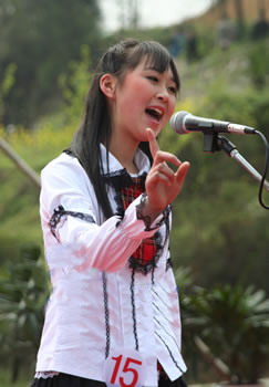 以修文赛区海选赛复赛第5名成绩晋级决赛的14岁小女生罗蕾,一上台便用几个深鞠躬礼貌地将组委会、评委等谢了个遍;一段颇具特色的天津快板,又将自己的家乡绘声绘色地夸了一番;到了才艺展示环节,罗蕾的一曲《挥着翅膀的女孩》也让人们听得如痴如醉……罗蕾老道的舞台表现力,着实令记者有些意外。之后记者经介绍得知,罗蕾的声乐老师邓晶,也是当日决赛的选手。