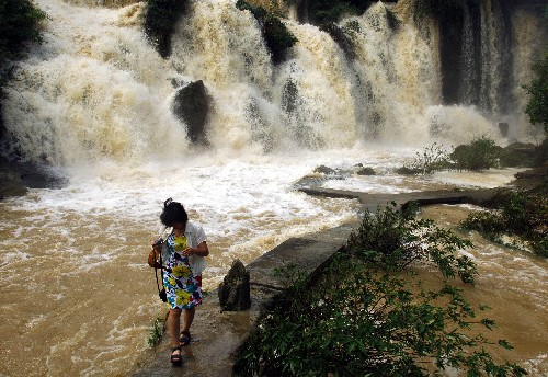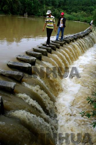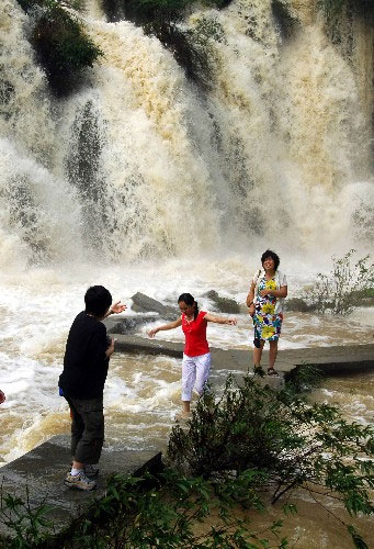 6月23日,游客在贵阳市花溪区石板镇天河潭景区游览。
