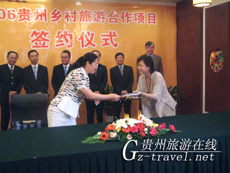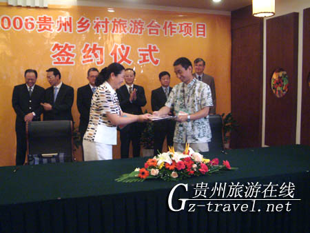 贵州省乡村旅游发展中心主任张晓松与贵州山利旅游开发有限公司总经理张坦签定