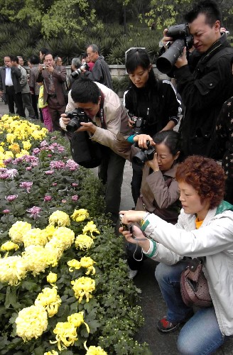 10月14日,摄影爱好者在拍摄菊花。