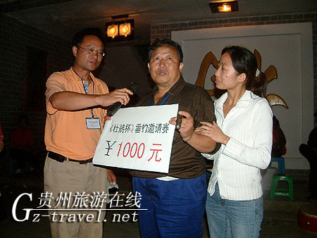 颁奖仪式于当晚20:00点举行,比赛设置最快起鱼奖、单尾重量奖、总重量奖及鼓励奖等。来自贵定县的谢国定先生以一条重达13.8斤的草鱼博得此次比赛单尾重量奖和总重量奖第一名,奖金:人民币2000元;长顺县广顺镇的钓友熊进松以一条4.8斤重的链鱼获得此次比赛单尾重量奖和总重量奖第二名,奖金:人民币1600元;来自长顺县的陈得华赢的了此次比赛的最多尾数奖。