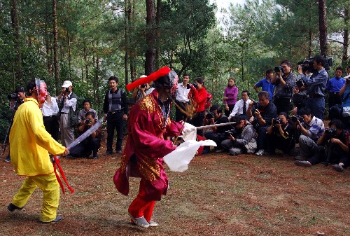 10ÔÂ21ÈÕ£¬ÔÚ¹óÖÝÊ¡¿ªÑôÏØ÷‡°ÓÌÁÏ磬µ±µØÑôÏ·°àµÄÑÝÔ±ÔÚ±íÑÝÑôÏ·¡£