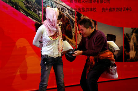 12日上午,由贵州省旅游局、贵州省旅游协会主办,全省九个地、州、市旅游局协办的“贵州省‘导游之星’大赛”在贵阳举行。进入个人复赛的各地选手们在舞台极力地展示自己的才艺和突现各地旅游的特色及资源。选手们在充分展现了各自的才能在舞台上尽显风采。现场导游词创作中,屏幕上显示的景点图片给导游们解说得淋漓尽致、身临其境;下午的个人才艺表演有各地原滋原味的歌曲演唱、纯民间的舞蹈表演、也有现代舞表演及诗歌朗诵、茶艺、模仿等个性表演,台下掌声连绵不绝。