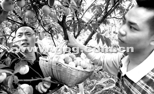位于清镇、织金交界,地处东风湖上游的凹河,是清镇市一个尚待开发的风景旅游点。近年来,在当地政府的扶持下,凹河村民利用得天独厚的气候优势和便利的交通条件,着力发展优质桃种植。目前,桃园面积已扩大到300多亩,年产值达300多万元。时下,正是百花桃上市季节,贵阳、毕节的客商及不少自驾车旅游的朋友纷纷前来采购、尝鲜,把果农们每天忙得不亦乐乎。图为6月18日,两位游客在果园内亲手采摘蜜桃的场景。