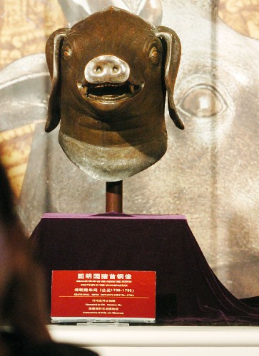 6月28日,由海外回归祖国的圆明园国宝羊、猪、猴、虎四生肖铜首像在贵阳市保利新城陈列中心展出。展览将持续至7月5日。