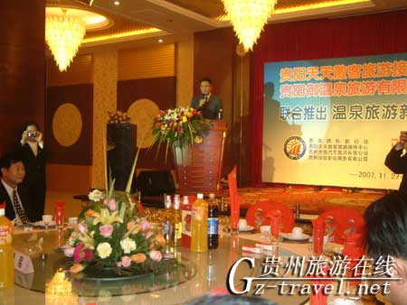 11月27日,贵州冬季温泉旅游新产品推介会在贵阳举行。由贵州省最大的散客旅游接待机构——贵阳天天散客旅游接待中心与贵阳御温泉旅游有限公司联合推广两条冬季旅游新线路;贵州省旅游局、市旅游局领导、各大新闻媒体、贵州省旅游行业、旅行社、景区、宾馆酒店等五百余人出席会议。